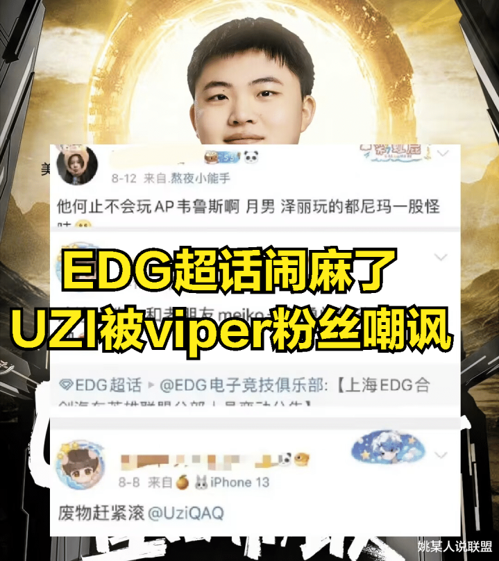 自从EDG战队无缘世界赛之后,EDG战队的超话里面,可以EDG战队粉丝和UZI粉丝间的争吵就没有断过,很多EDG老粉都在超话里面怀念EDG战队曾经的ad选手deft和viper,甚至有不少EDG粉丝拿deft和viper的比赛操作去嘲讽UZI,不少EDG粉丝认为如果新赛季EDG战队的AD是DEFT或VIPER,那么EDG战队肯定能够进入世界赛。