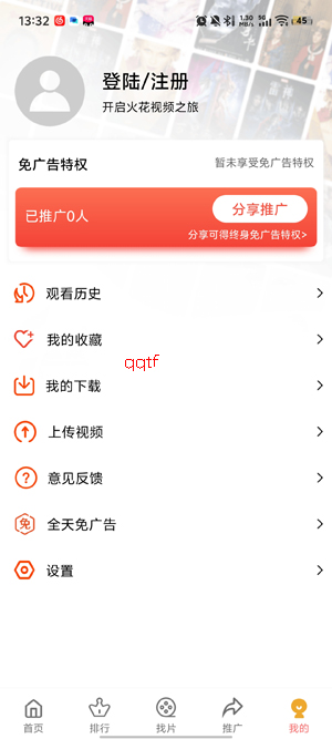 打开你的火花视频,在我的界面点击登录注册功能。
